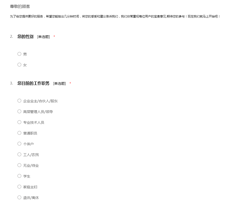 为了给您提供更好的服务,希望您能抽出几分钟时间,将您的感受和建议告诉我们,我们非常重视每位用户的宝贵意见,期待您的参与!现在我们就马上开始吧!