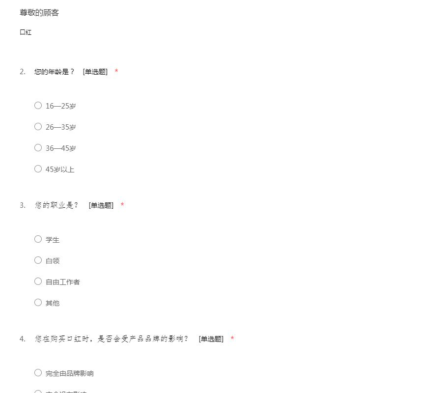 关于使用口红的问卷调查