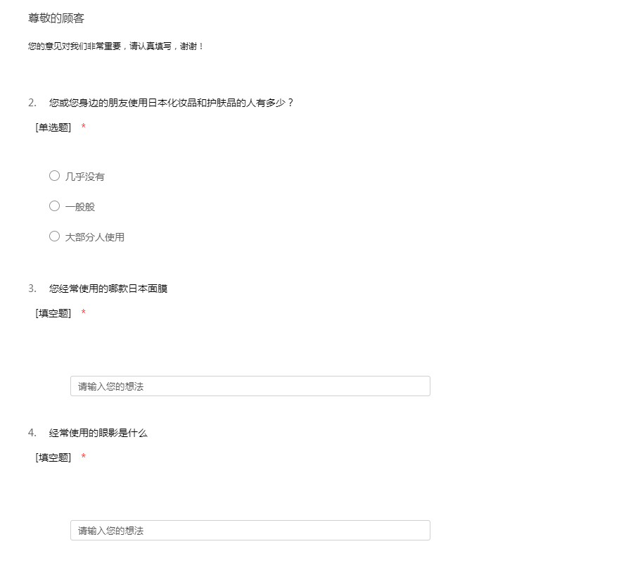 日本化妆品简单的问卷调查