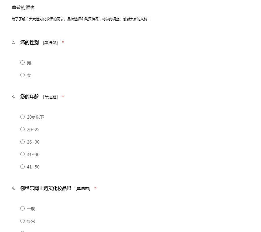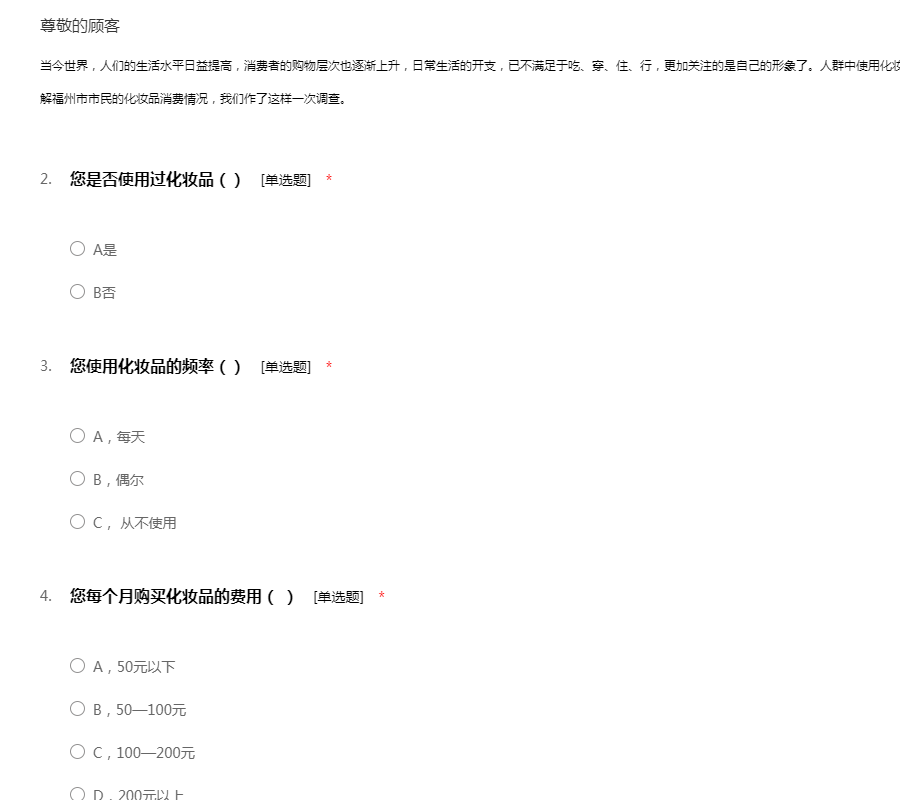 高质量化妆品调查问卷