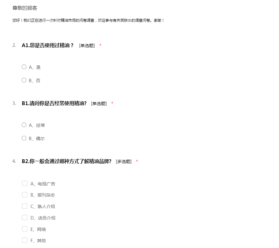 您好!我们正在进行一次针对精油市场的问卷调查,欢迎参与有关爽肤水的调查问卷。谢谢!