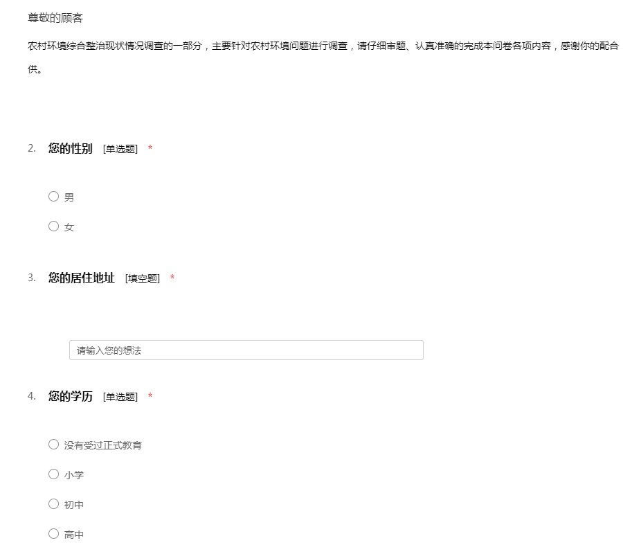 体验式生态农场项目调查问卷