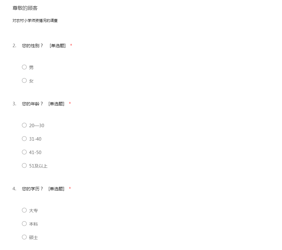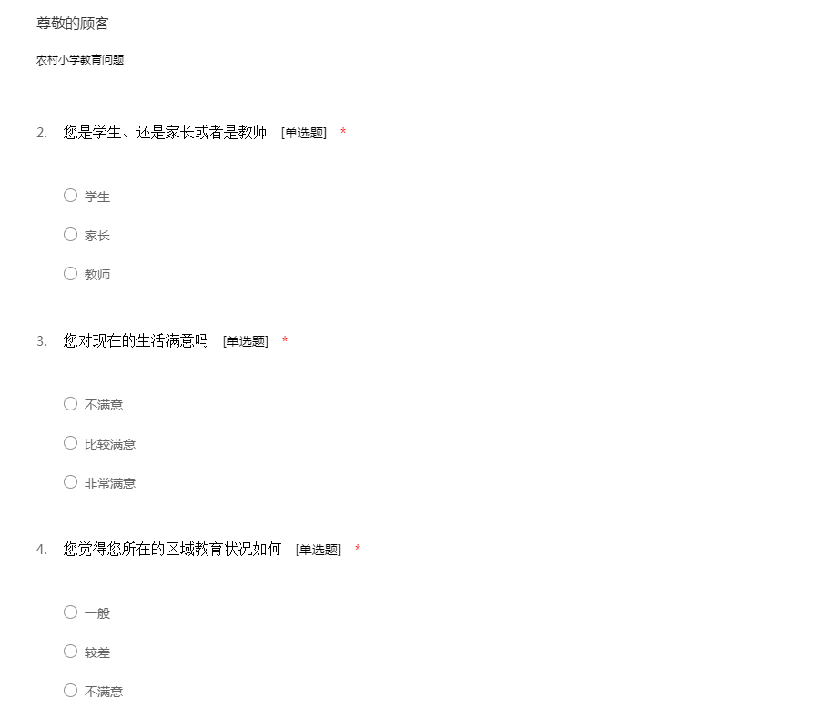 有关农村教育的调查问卷
