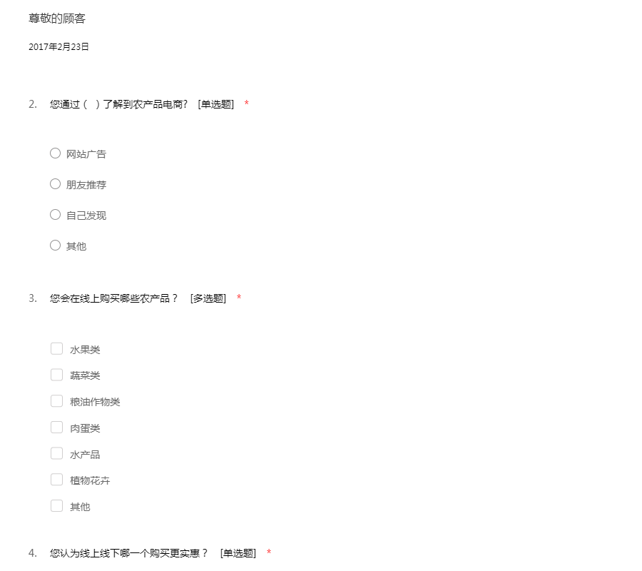 消费者网购农产品的问卷调查
