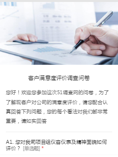 您好!欢迎您参加这次51调查网的问卷.这是一份关于客户满意度方案的调查问卷,目的在于了解您对保险公司服务的满意度,以便对保险公司服务质量的改进提供有益的建议。您的建议对我们很重要。