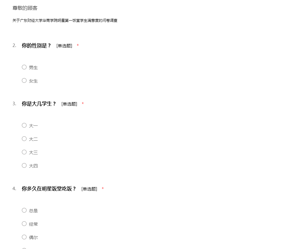 关于广东财经大学华商学院明星第一饭堂学生满意度的问卷调查