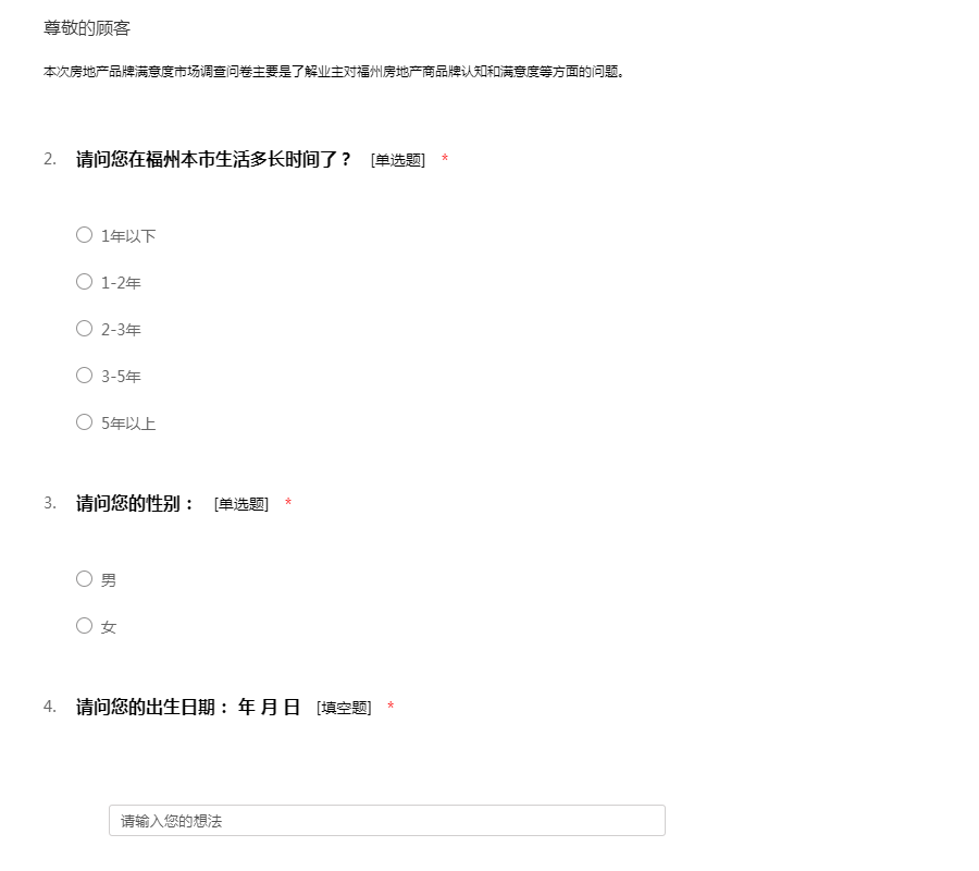 本次房地产品牌满意度市场调查问卷主要是了解业主对福州房地产商品牌认知和满意度等方面的问题。
