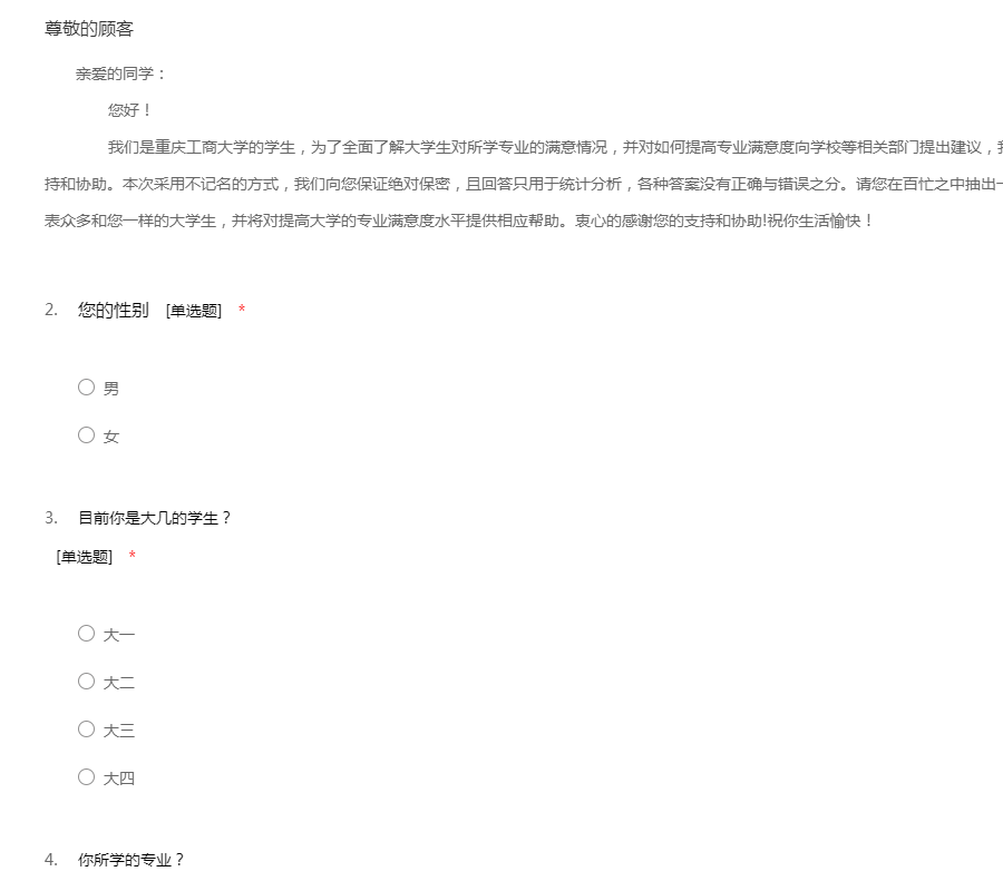 回答不分对错,真实反映您的想法即可。我将对您的资料及回答完全保密。调查将耽误您10分钟左右的时间,感谢您的配合与支持!