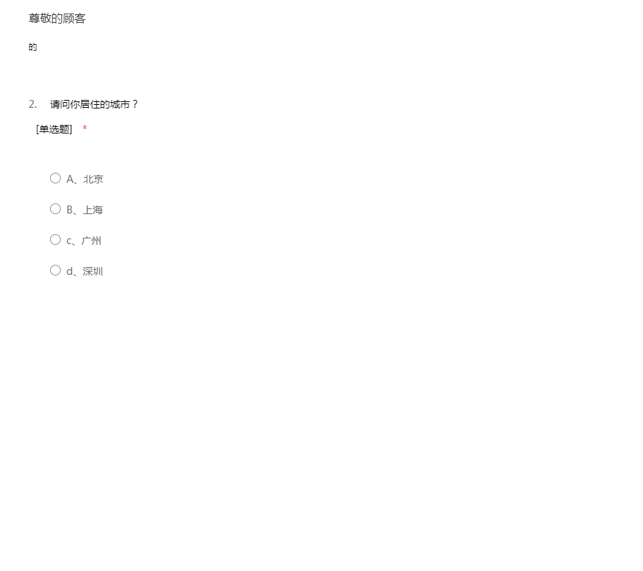 5、请尽量不要选择(即“不清楚/不知道”)的选项,只有在确实没有接触过而对该问题无法做出客观判断时才允许选择“不清楚/不知道”;