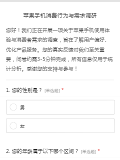 您好!我们正在开展一项关于苹果手机使用体验与消费者需求的调查,旨在了解用户偏好、优化产品服务。您的真实反馈对我们至关重要,问卷约需3-5分钟完成,所有信息仅用于统计分析。感谢您的支持与参与!