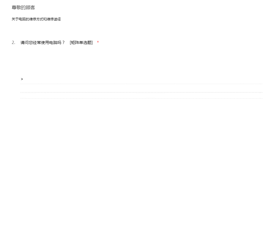 你好,非常感谢你能参与我们的问卷调查,我们正在进行一项关于电脑的调查问卷,希望你能抽点时间填写我们的问卷。