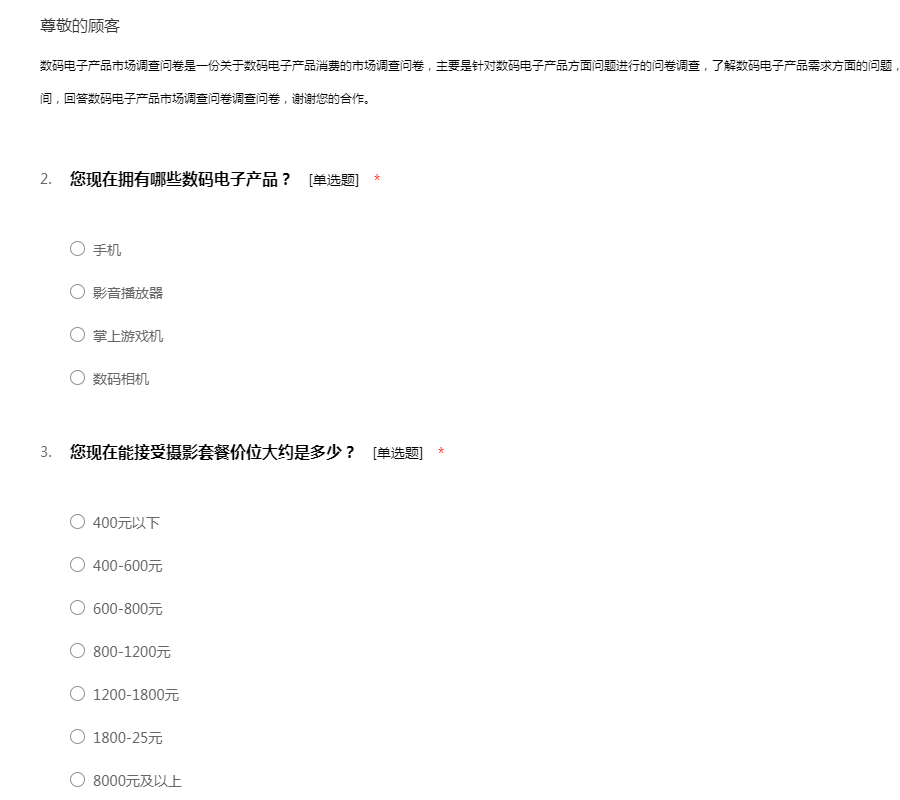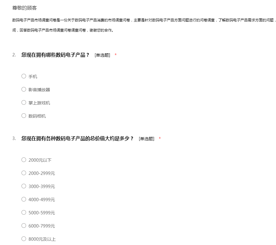 数码电子产品市场调查问卷是一份关于数码电子产品消费的市场调查问卷,主要是针对数码电子产品方面问题进行的问卷调查,了解数码电子产品需求方面的问题,以此展开问卷调查活动 ,耽误您一些宝贵时间,回答数码电子产品市场调查问卷调查问卷,谢谢您的合作。