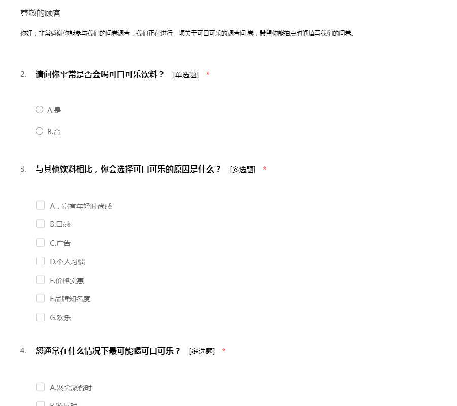 为了更加了解可口可乐的市情况,想邀请您用几分钟时间帮忙填答这份问卷。您的真实回答对我们来说十分宝贵!感谢您在百忙之中回答此卷!51调查网(我要调查网)谢谢您的参与。