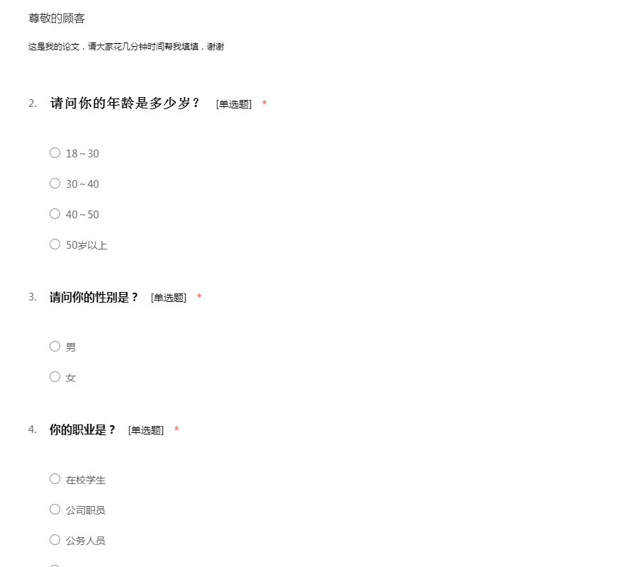 请您耽误几分钟时间请填写下面问卷,您的回答对于我们是非常宝贵的,让我们能够更好的改善产品,以便于为您和更多的消费者提供更好的服务。