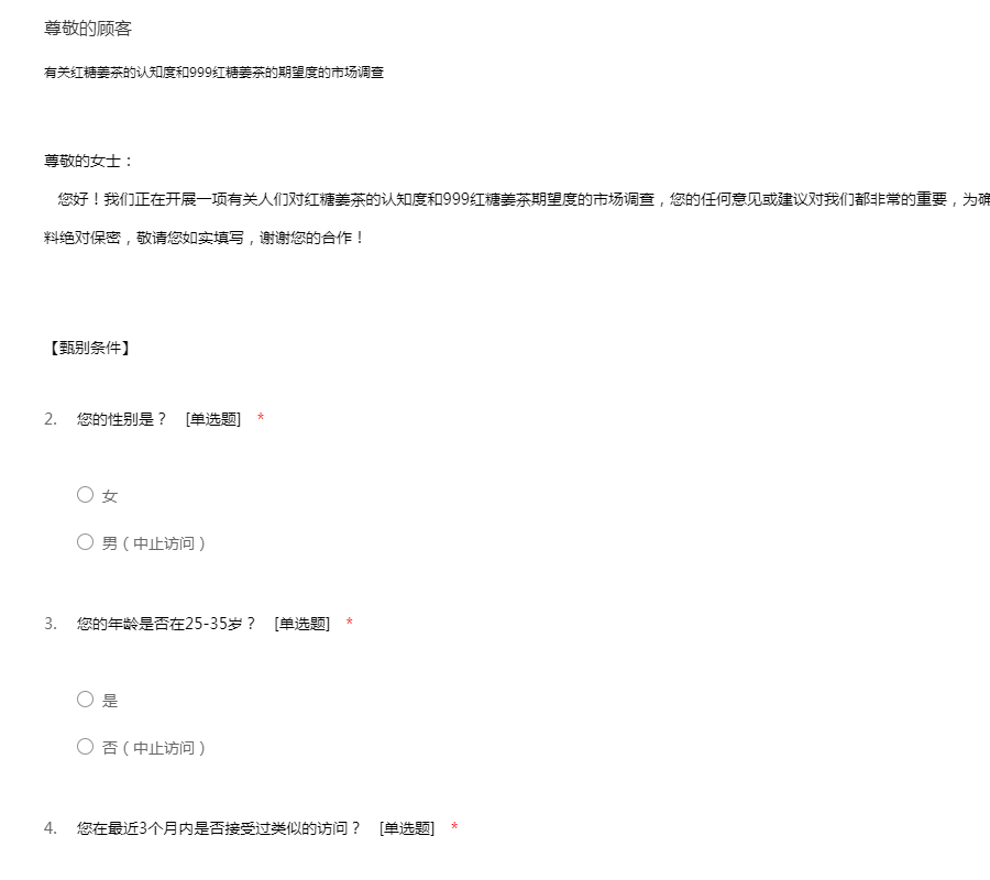 有关红糖姜茶的认知度和999红糖姜茶的期望度的市场调查