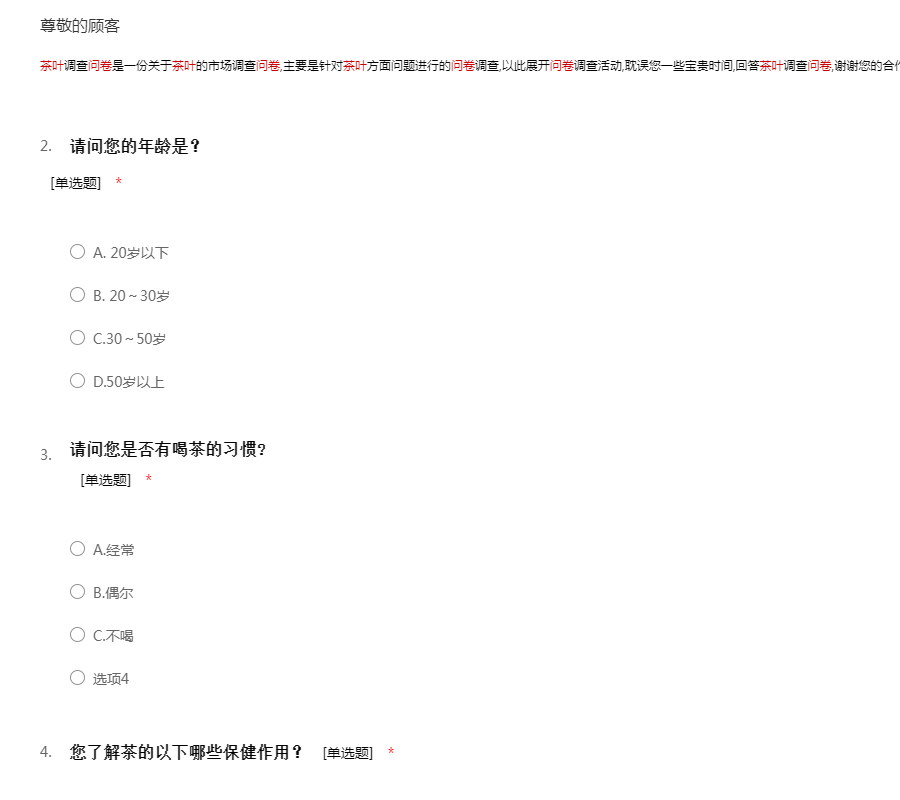 茶叶与养生问卷调查是为了调查消费者对茶叶养生的看法和消费习惯,我们保证不会泄露您的个人信息,请放心填写。51调查网(我要调查网)谢谢您的参与。