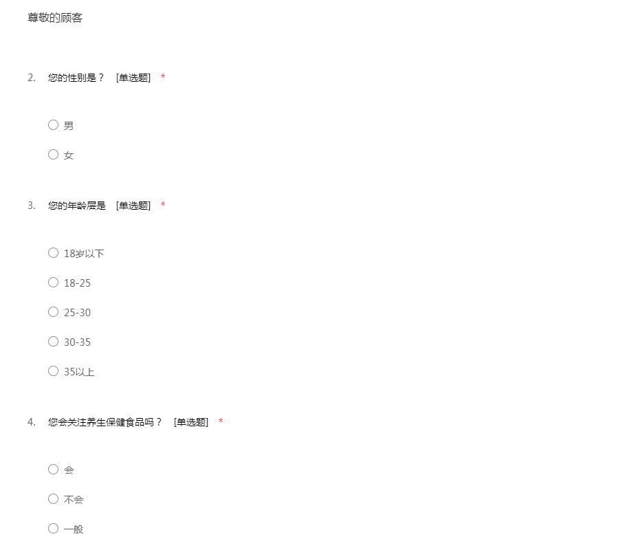 感谢您参与“五谷杂粮饮料调查问卷”,本次调查旨在了解消费者在选购五谷杂粮饮料的情况。调查所得的结果对您的工作和生活不会带来任何不良影响,请您根据自己的实际情况放心填写,51调查网感谢您的配合!
