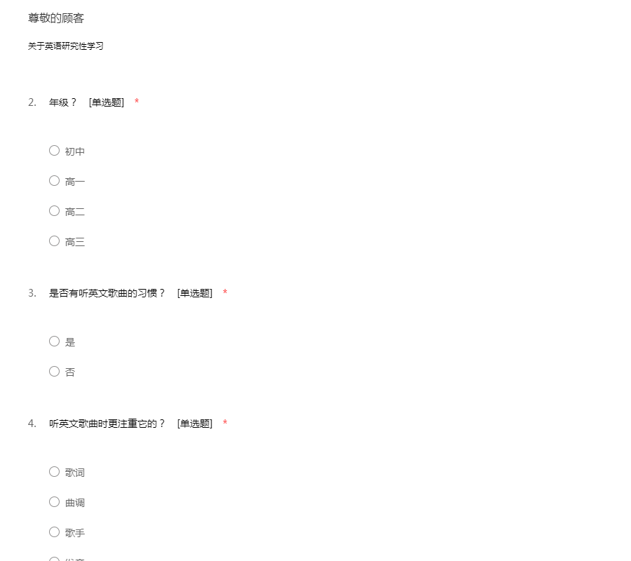 本科毕业论文问卷调查