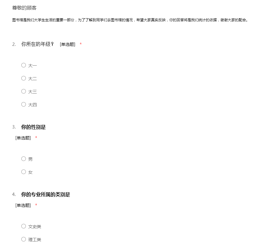 图书馆是我们大学生生活的重要一部分,为了了解到同学们去图书馆的情况,希望大家真实反映,你的回答将是我们统计的依据,谢谢大家的配合。