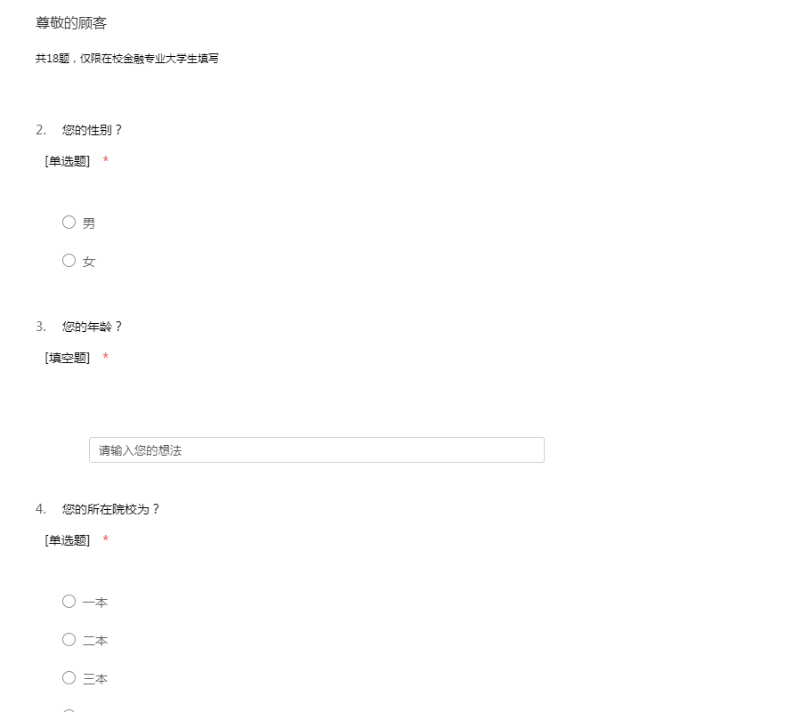 共18题,仅限在校金融专业大学生填写