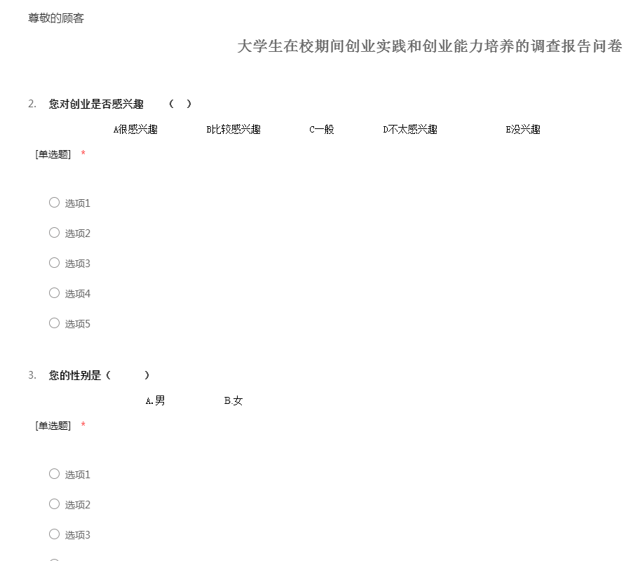 关于大学生在校期间创业实践和创业能力培养的调查报告问卷