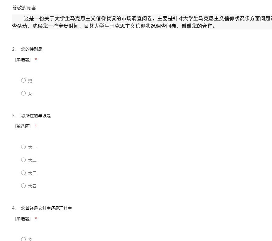大学生马克思主义信仰状况调查问卷
