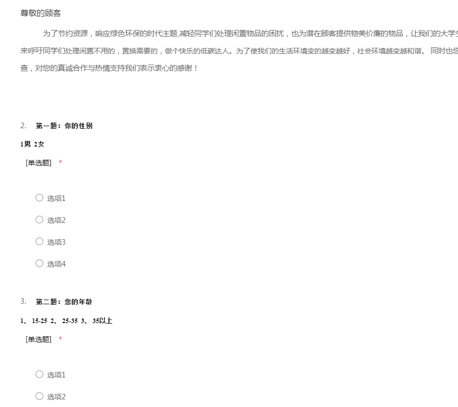 为了节约资源,响应绿色环保的时代主题,减轻同学们处理闲置物品的困扰,也为潜在顾客提供物美价廉的物品,让我们的大学生活更加经济方便,我们进行这次调查来呼吁同学们处理闲置不用的,置换需要的,做个快乐的低碳达人。为了使我们的生活环境变的越变越好,社会环境越变越和谐。 同时也您的切身利益,希望您配合我们这次的调查,对您的真诚合作与热情支持我们表示衷心的感谢!