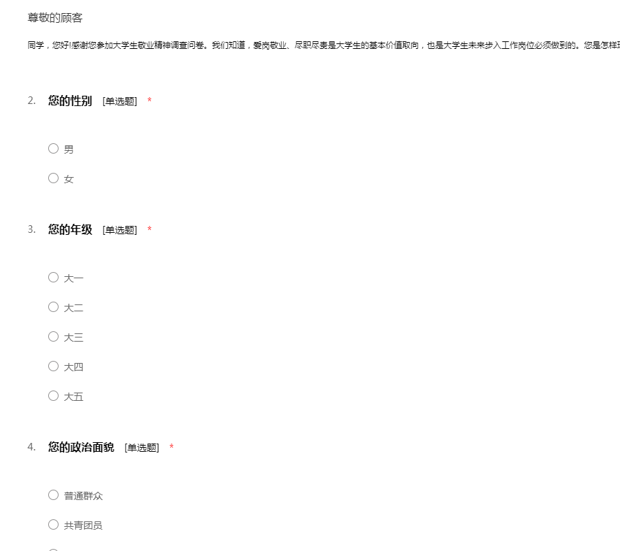 大学生敬业精神调查问卷