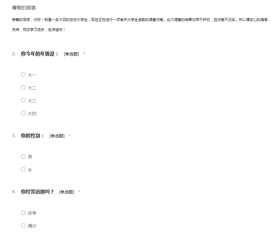 大学生追剧调查问卷