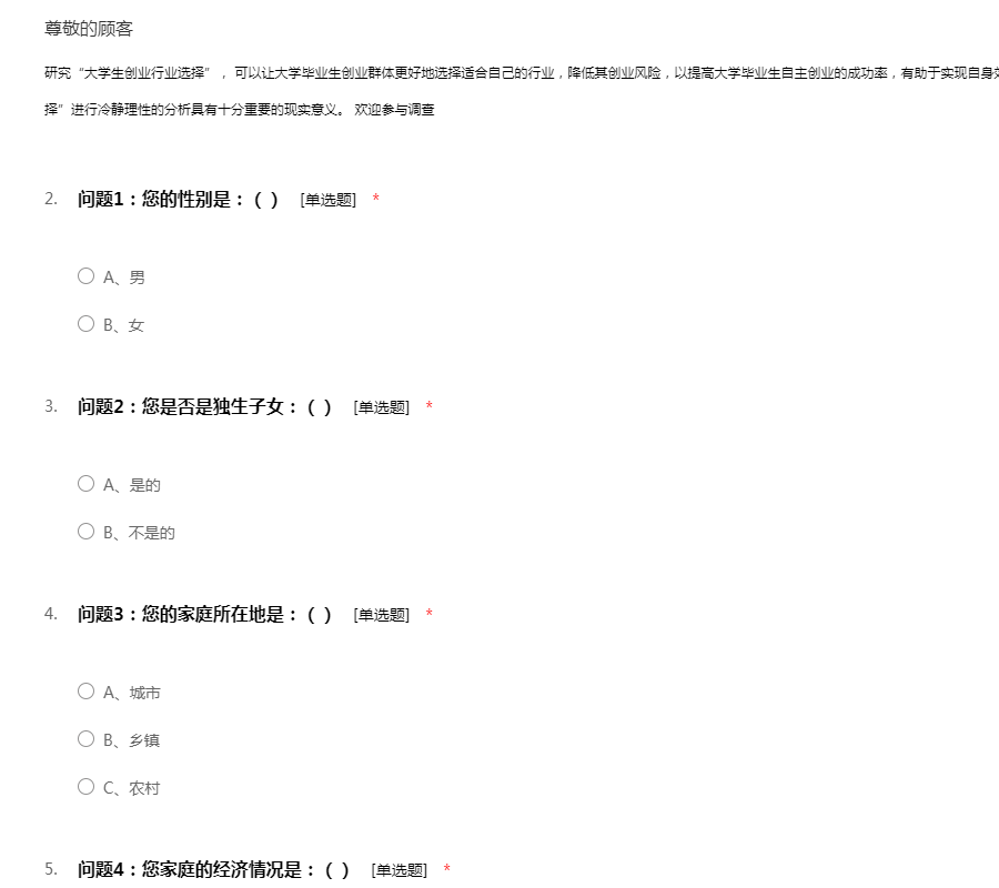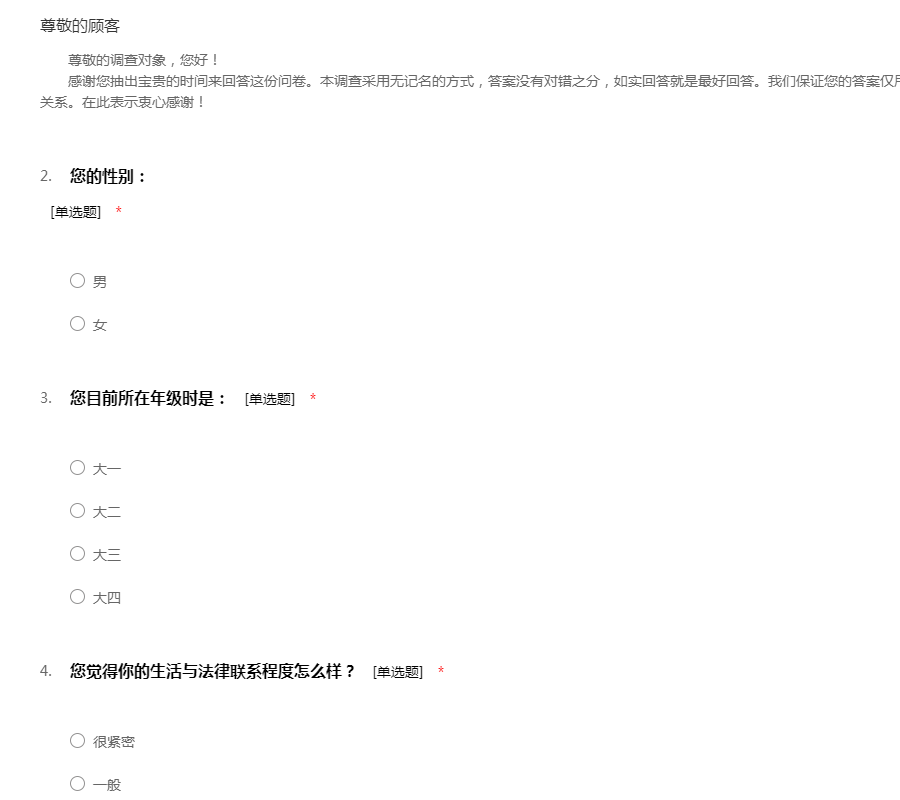 本科毕业论文问卷调查