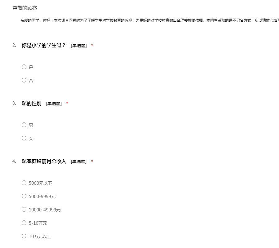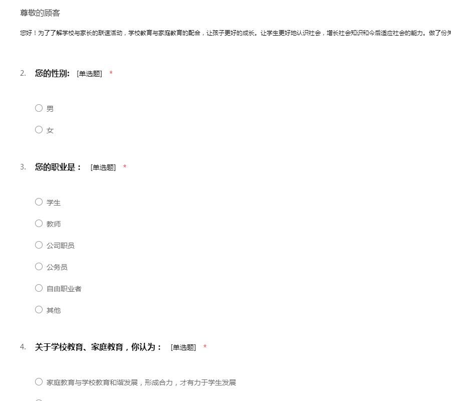 您好!我是学生,目前正在写一项关于孩子对家长的调查问卷,希望通过此次调查了解孩子的一些想法,真诚希望得到您的协助。孩子对家长的调查问卷仅作为学习之用,请放心填写,谢谢您的支持!