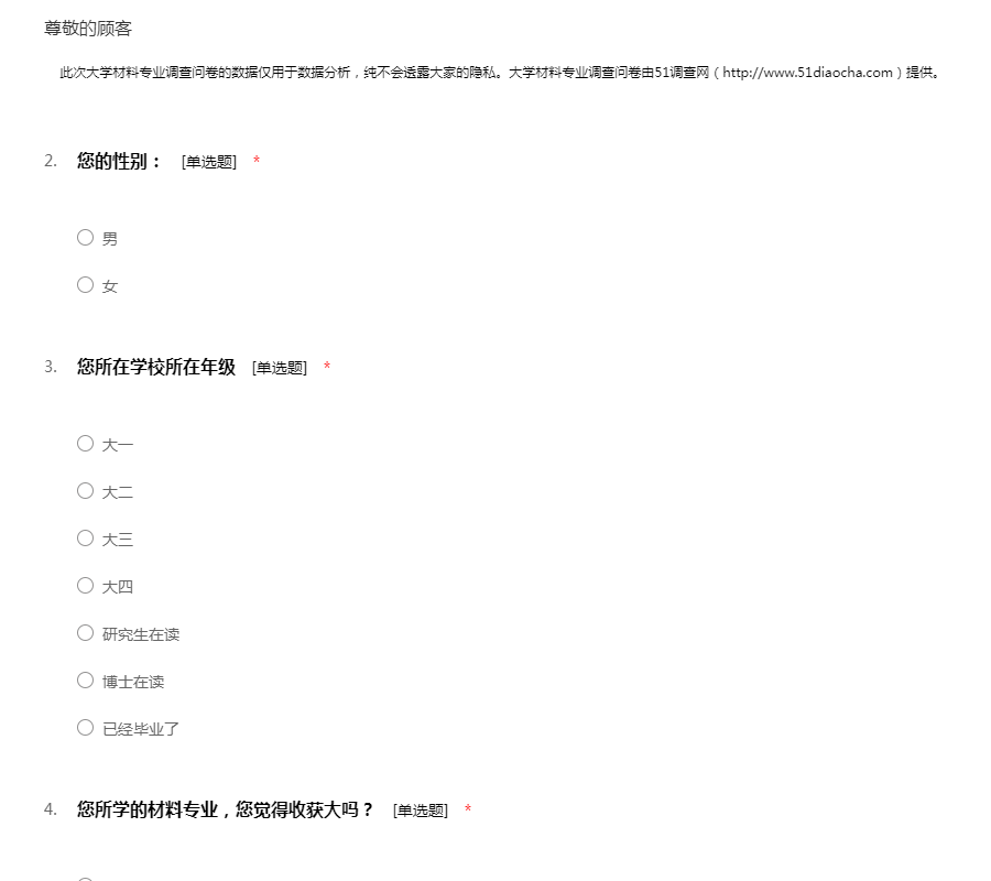 大学材料专业调查问卷