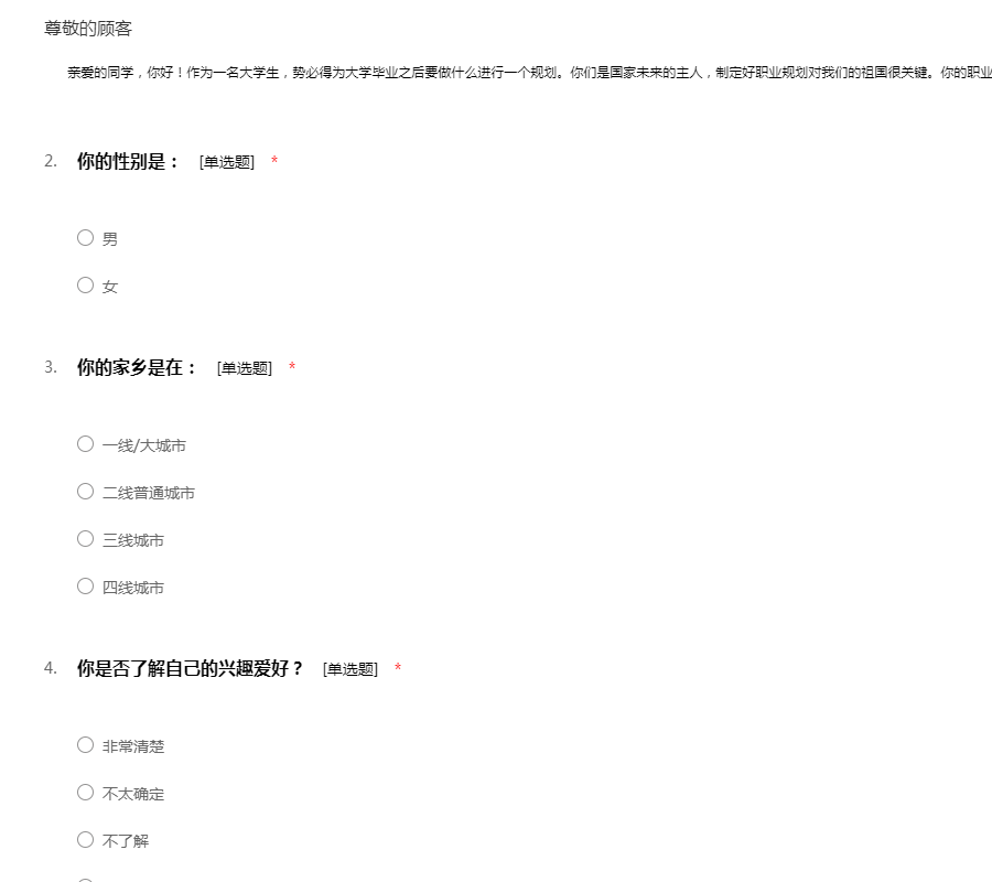 有关在校大学生职业规划调查问卷