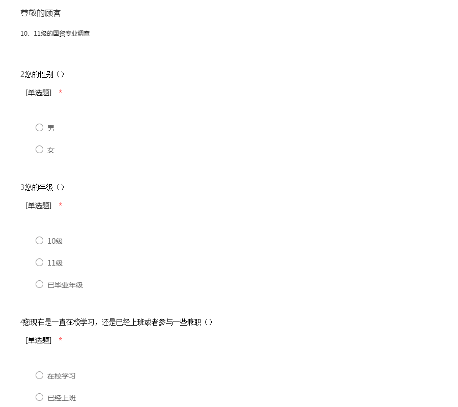 10、11级的国贸专业调查
