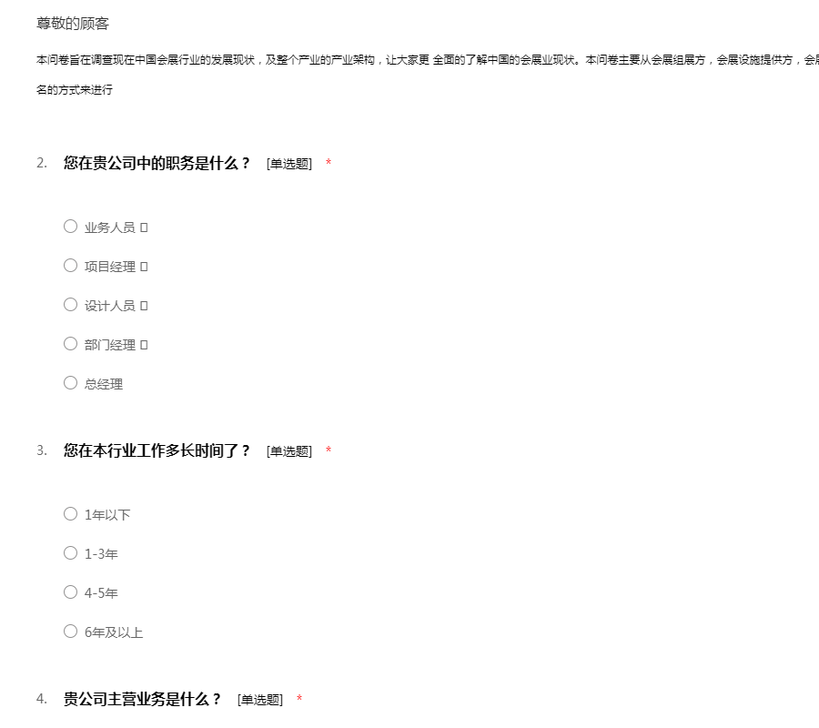 会展行业问卷调查