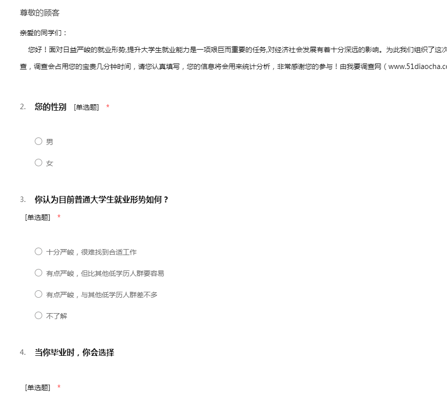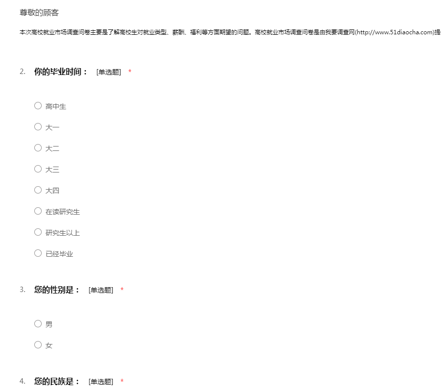 欢迎参加“学生就业问卷调查”的样本调查工作!感谢您抽出宝贵的时间配合我们的调查工作,51调查网谢谢您的参与。