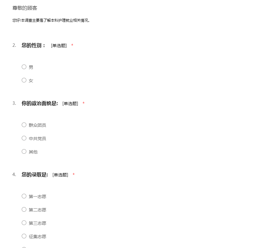 本科就业护理调查问卷