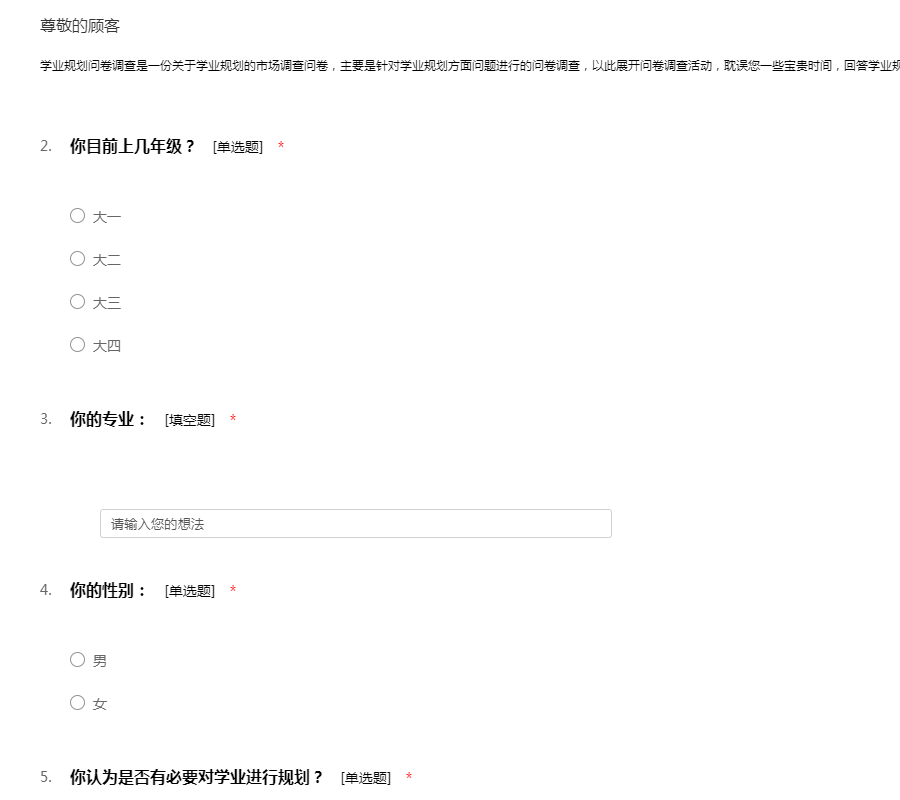 学业规划问卷调查