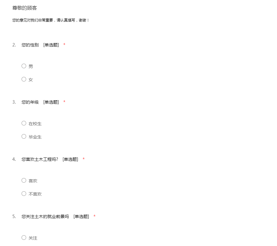 土木工程创业就业实践调查问卷