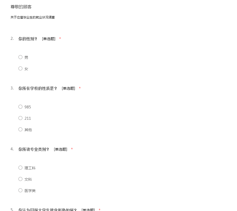 针对目前大学生就业情况,我们做了如下问卷,希望得到您的支持,谢谢1