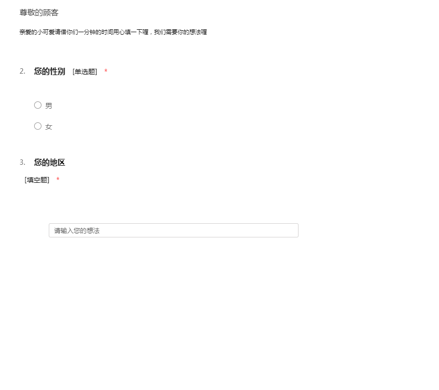 亲爱的小可爱请借你们一分钟的时间用心填一下喔,我们需要你的想法喔
