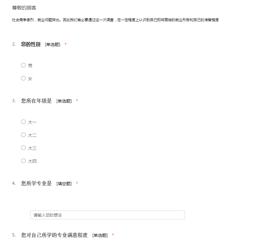 学生就业问卷调查