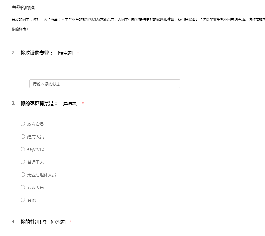 该问卷面向广大需要找兼职工作的朋友,用于收集你们对这样一个提供兼职工作平台的意见。这些意见将会注入我们未来的兼职工作平台中。