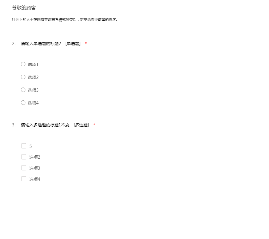 大家好!非常感谢大家在百忙之中抽空填写此调查问卷。此问卷是关于我国外贸从业人员素质分析的调查。此问卷主要用于毕业论文写作。请大家根据真实情况填写,再次非常感谢大家的参与。