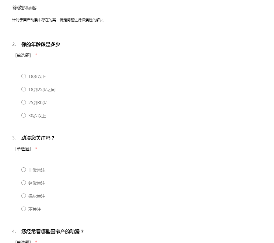 国产动漫问题调查问卷