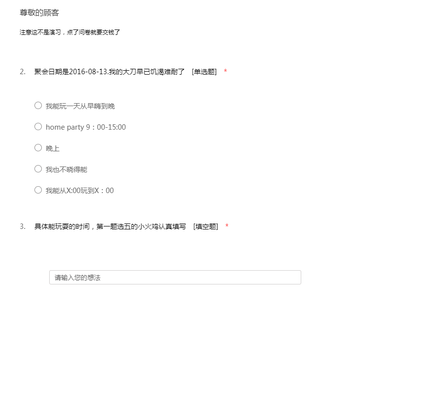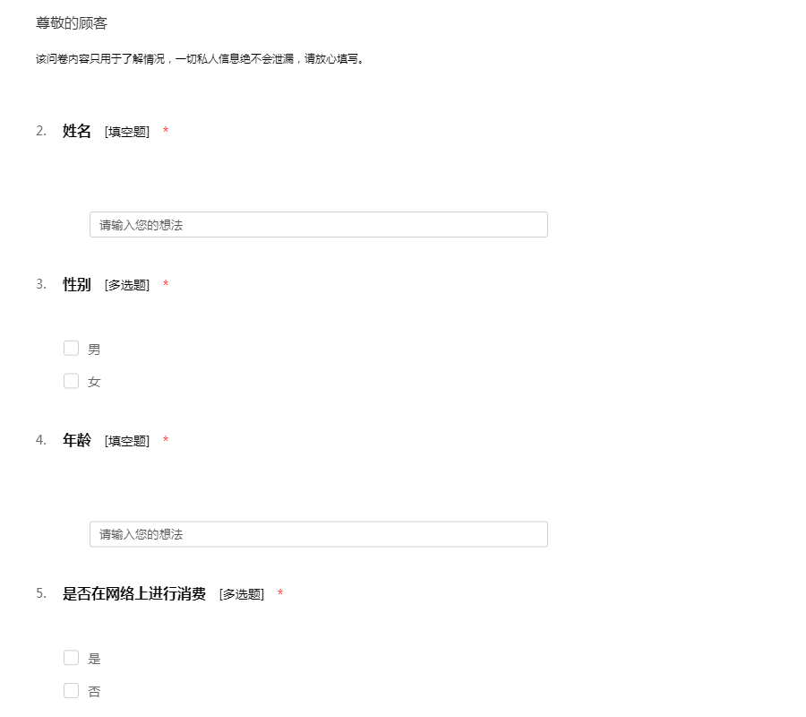 该问卷内容只用于了解情况,一切私人信息绝不会泄漏,请放心填写。