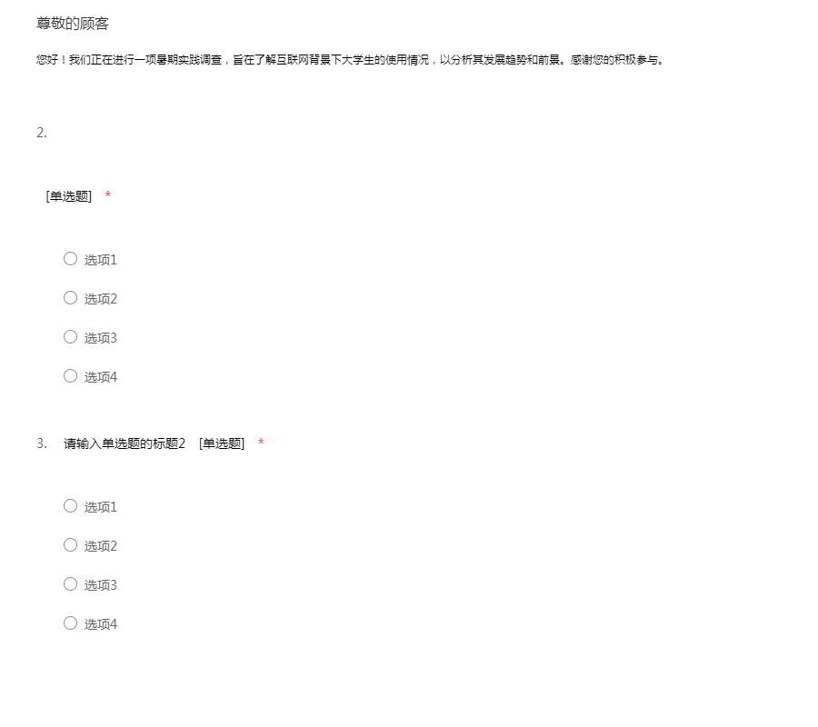 您好!我们正在进行一项暑期实践调查,旨在了解互联网背景下大学生的使用情况,以分析其发展趋势和前景。感谢您的积极参与。