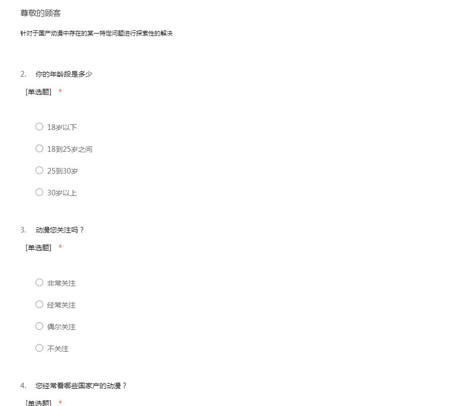 本次问卷是针对市场中国产动漫的当前某一情况做研究情况