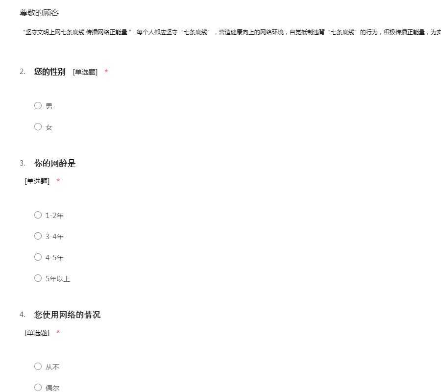 本次校园网络购物调查问卷是为了比较全面地了解在校学生对网络购物的看法,您的真实回答对我们来说十分宝贵!感谢您在百忙之中回答此卷!51调查网(我要调查网)谢谢您的参与。