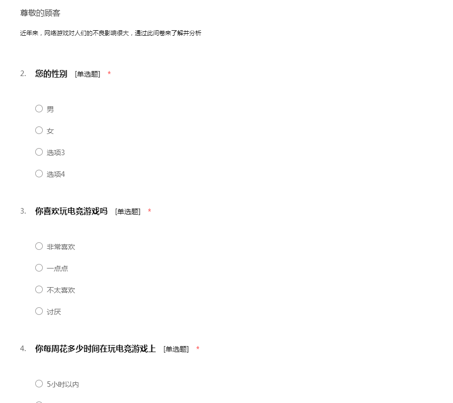 近年来,网络游戏对人们的不良影响很大,通过此问卷来了解并分析